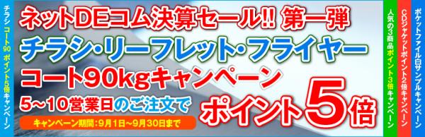 ※チラシ・リーフレット・フライヤー印刷のコート90kg、5営業日~10営業日の場合は、ポイント5倍キャンペーンが適用されます。