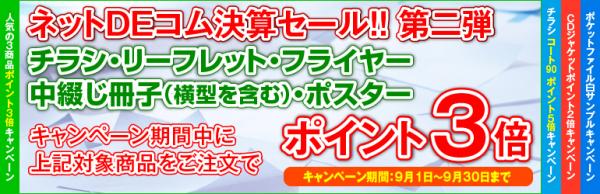 >>ネットデコムでも上位を占める人気商品『チラシ印刷・ポスター印刷・中綴じ冊子印刷』で“ポイント3倍”もらえます!
