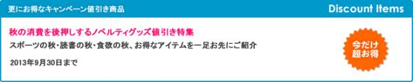 販促ノベルティ卸売りセンターでは、通常の卸売価格よりも更にお得な!値引きキャンペーンを期間限定で開催いたします。是非、お得なこの機会に名入れノベルティをご検討ください。お得な値引き期間は、2013年9月30日まで。