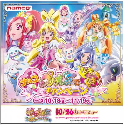 株式会社ナムコ(本社:東京都大田区)は、2013年10月26日(土)より全国の映画館で公開される『映画ドキドキ!プリキュア マナ結婚!!?未来につなぐ希望のドレス』の公開を記念し、タイアップキャンペーン「ナムコ プリキュアでドキドキ!キャンペーン」を、2013年10月18日(金)から11月19日(火)まで、全国のナムコ直営アミューズメント施設約200店舗で開催することを決定いたしました。