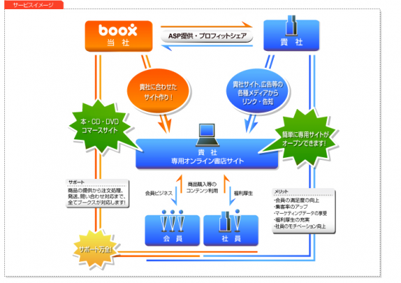 ブークスは、自社店舗であるboox store(http://boox.jp/)だけではなく、Yahoo!、楽天、リクルートなど大手ショッピングモールへの出店、オンライン書店ASPサービスの展開により、インターネット上に250店舗以上のECショップを展開しております。2012年7月末時点でこれらECショップをご利用いただきました累計会員数は約63万人でございましたが、本日現在、約1.6倍の104万人に達することができました。設立以来、100万人以上のお客様に弊社のサービスをご利用いただくことを1つの目標にしておりましたので、ここにお知らせさせていただきます。