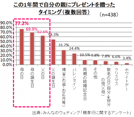 「母の日(77.2%)」「母の誕生日(69.9%)」「父の日(62.6%)」