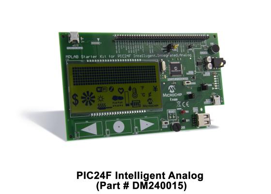 PIC24FJ128GC010ファミリを使った開発は、マイクロチップ社のインテリジェントアナログ内蔵PIC24F向けMPLAB(R)スタータキット(製品番号: DM240015)でサポートします。このキットは、PIC24FJ128GC010ファミリの内蔵アナログ モジュールの信号品質がデジタル回路に影響されないように設計されています。このキットには携帯型製品の試作に必要なものが95%揃っており、後はセンサを追加するだけで開発が行えます。
