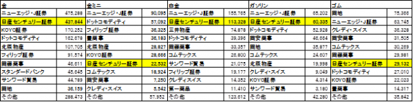 TOCOM8月度主要銘柄別売買枚数上位10社