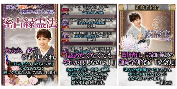 ・アプリ名称:【あなたの100年】激当たり人生占い「密占縁霊法 祈祷師 菜奈実」