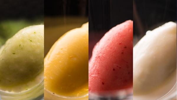果汁比率45%。オレンジ、パッションフルーツ、バナナのブレンドが、太陽の恵みをそのまま閉じ込めたようにみずみずしく濃厚。目にも鮮やかなソルベです。