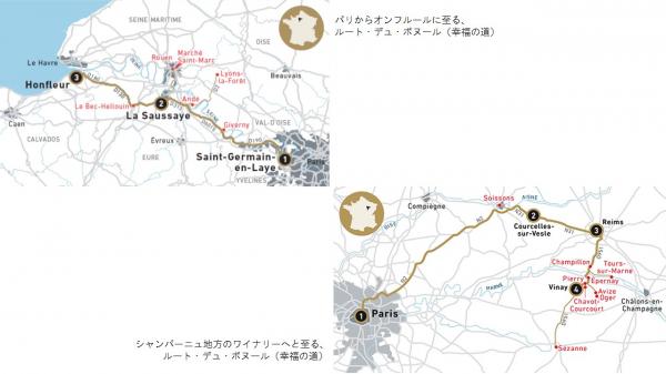 【パリからオンフルールに至る、ルート・デュ・ボヌール(幸福の道)】