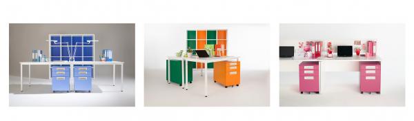 トーンの違う同系色や、鮮やかあるいは穏やかな色調でまとめるなど、使う人に合わせたコーディネートが可能です。収納物に応じて色分けしたり、オフィスのチーム特性ごとに分けたりと、カラーの活用方法は多種多様。アイデア次第でコミュニケーションが活性化する楽しい仕事場作りに役立ちます。