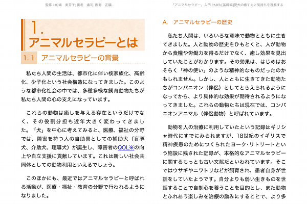 本書は、この「アニマルセラピー」に焦点を当て、アニマルセラピーの中心的な役割を果たしてきた「犬」について詳細に紹介しています。家庭犬もアニマルセラピーの現場で活躍するセラピー犬も、同じ「犬」です。犬の潜在能力、習性や行動をよく知ることで、あなたはあなたの愛犬と、今以上に「より良い関係」を築くことができるでしょう。
