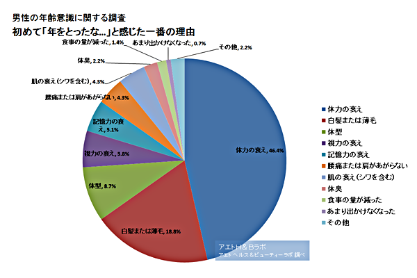 ただし、男性の場合、「体力の衰え」と答えた人が圧倒的で、46%にもなりでした。