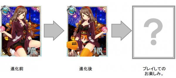 カードはそれぞれ「心」、「技」、「体」の属性を持っており、妖魔とのバトルでの相性は三すくみの関係です。そして同じシノビのカードを合成させると、より妖艶に“進化”して行き、どんどん強くなってい