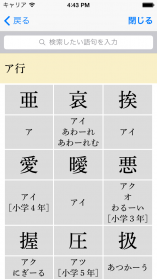 LogoVista電子辞典で培った検索方法を継承。前方一致/後方一致/完全一致/部分一致/全文検索といった豊富な検索オプションを利用できます。また文字を入力すると候補見出し語が表示され、うろ覚えでも検索できるインクリメンタルサーチや、検索結果に表示された本文中の用語をなぞることでそのまま連続辞書引きも可能。思考を妨げることなく次々と検索できるのが特長です。マルチタッチによる拡大やセンサーによる画面の回転にも対応しています。