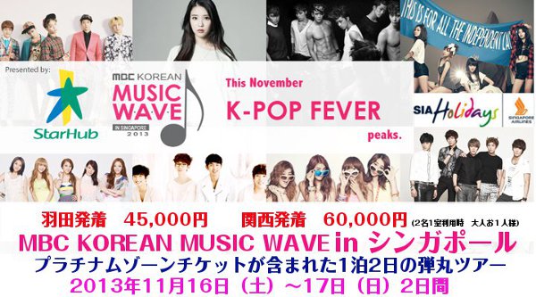 『MBC KOREAN MUSIC WAVE in シンガポール』の観覧入場券付きツアーの 申込みを開始した。