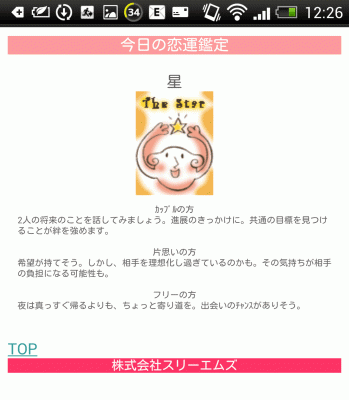 ・今日の運勢 ・ 今日の恋愛運(カップル/片思い/フリー) ・ 今日の金運