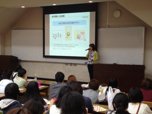 ピクスタは、「インターネットでフラットな世界をつくる」を理念に、発展するC to B、C to Cの時代で生きていける人材育成を支援しようと、今回はじめて「イラストレーター」に焦点を当てて専門学校で授業を開催。ストックサイトの紹介と成功のポイントを解説し、最初に取り掛かりやすい「年賀状」をテーマに、需要の多い「フォトフレーム型年賀状」と「はがきサイズの自由デザイン」の2つの課題を出題。