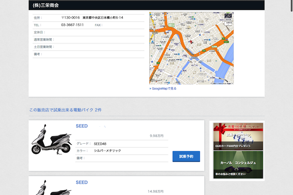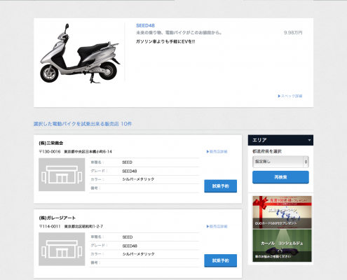 お近くにあるテラモーターズの電動バイクを試乗出来る販売店を照会します。