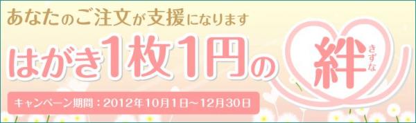 年賀状印刷の年賀職人(運営:有限会社総文堂・千葉県市原市)は、インターネット上で800点以上の年賀状デザインを掲載し、ユーザーが好きなデザインを選んで、作成する印刷サービスを行っている。高価な編集ソフトなどを必要とせず、画面上で印刷面のレイアウトが自由にできる機能などを搭載し、人気の年賀状印刷サイトである。代表の伊藤英樹氏は「従来の早期割引や送料サービスなどのほかに、何か社会に役立つサービスを考えたとき、『はがき1枚1円の絆』キャンペーン実施を今年も継続する決めた」と話す。