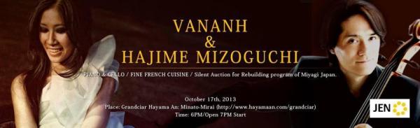 『世界の車窓から』のテーマ曲で世界的に知られるチェリスト「溝口肇」と、6つ星豪華客船のパフォーマーでオーストラリア在住のクラシックピアニスト「バン・ナン」2名のアーティストによる、一夜限りのスペシャルコラボレーション!2013年10月17日横浜みなとみらいにて復興支援チャリティーコンサートが実現!10月4日(金)より人数限定のご招待チケットの販売受付が開始される!