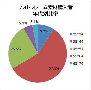 その人気のフォトフレーム素材を購入しているのは、35歳~44歳の子育て世代。購入者の約6割にあたる57.6%がこの世代です。35歳~44歳の子育て世代の中でも、購入しているのは6割が男性。