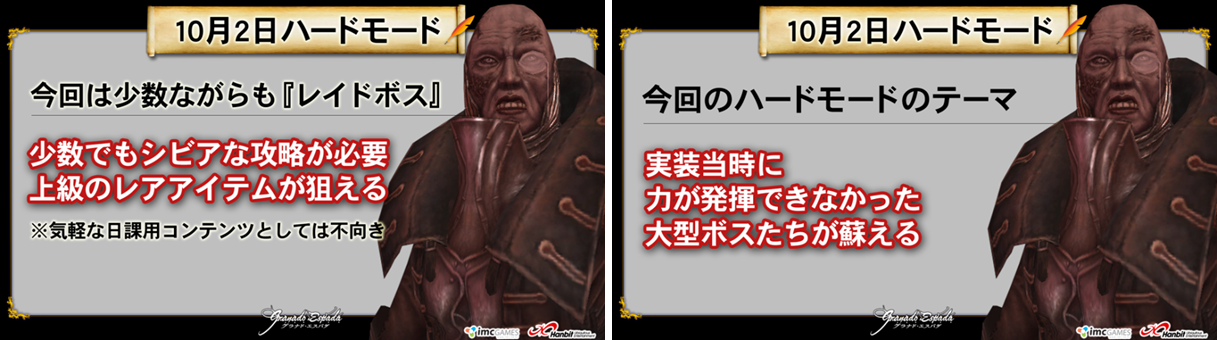 本日10月2日(水)、「ヨルムンガンドの巣」「カスティア遺跡」にハードモードを実装します。バウンティハンター、リボルドウェ地下に続くハードモードの実装です。上位ユーザーを対象としたハードモードですが、今回は、以下のコンセプトを元に実装しています。