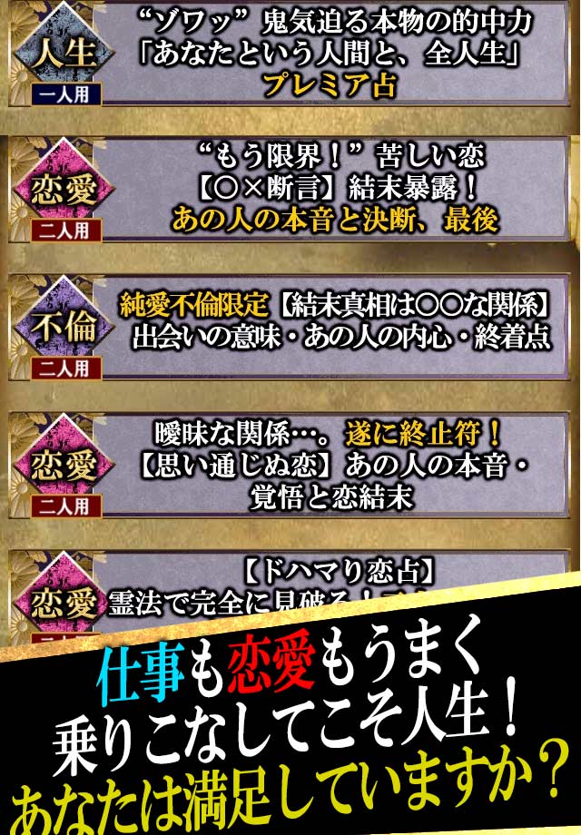 ・アプリ名称:【的中占い】60億人フェロモン解析占「和占香気法」