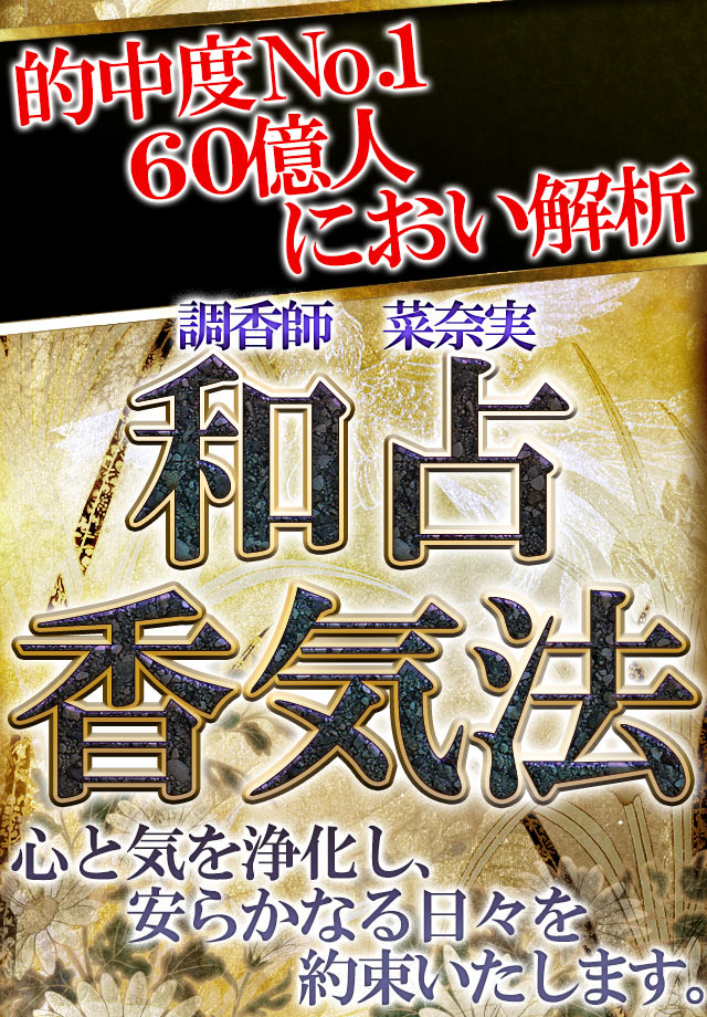 本コンテンツでは心の中から発している匂いをナノレベルまで読み取り、解析し、あなたが発している匂いと、あなたに見合った香りを調香します。予約待ち数か月!当たると噂の【調香師 菜奈実】大成した和占香気法。心と気を浄化し、安らかなる日々を約束いたします。あなたの心が発している気の香を明らかにして行くことで、流れを掴み取り、今後の人生の足掛かりをつかみます。