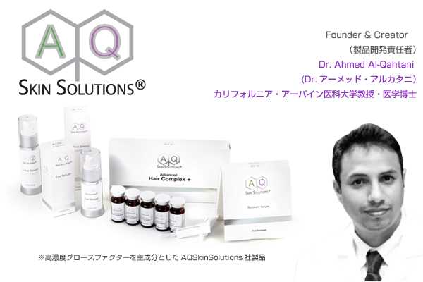 ■ Dr.アーメッドが開発したグロースファクター(=細胞成長因子)を主成分としたAQ Skin Solutionsの育毛剤(発毛剤)やスキンケア製品