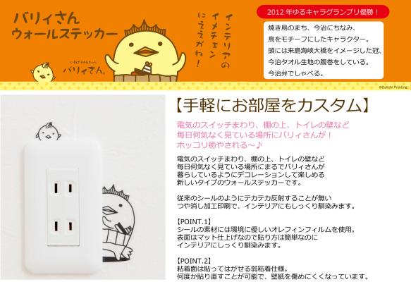 【ゆるキャラグランプリ2012 グランプリ いまばりゆるキャラ バリィさん ウォールステッカー 5種】発売スタート!