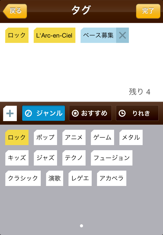 タグ付けは、膨大な曲の分類や関連付けなどに役立つ、ひとことコメントの付加機能です。曲のジャンルやオリジナル曲の情報、感想などを20文字までの長さで付加できます。一般的なユーザー投稿型サービスでも数多く採用されており、ユーザー同士のコミュニケーションに活用される例も見られます。
