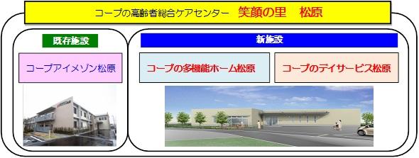 (3)新設する「コープの多機能ホーム松原」「コープのデイサービス松原」と既存施設「コープアイメゾン松原」の総称は「コープの高齢者総合ケアセンター 笑顔の里 松原」と決定しました。