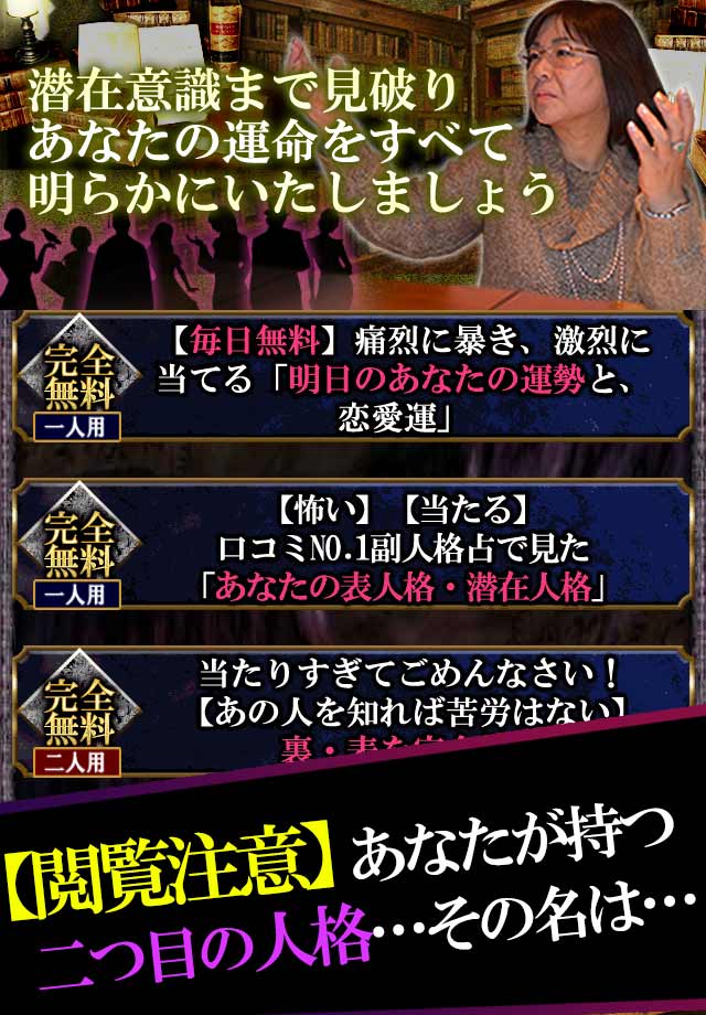 ・【怖い】【当たる】口コミNO.1副人格占で見た「あなたの表人格・潜在人格」