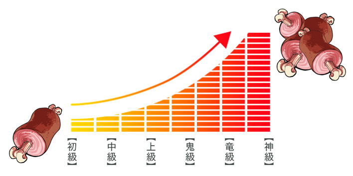 難易度が高いダンジョン程、よりレアな「お肉」カードの出現確率や“超獣”のカード化確率が上がります。