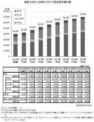 ◆ EPS世界市場はコラムアシスト式・ラックアシスト式が牽引し、2020年には2012年比1.9倍の6,550万台へ大きく伸長すると予測
