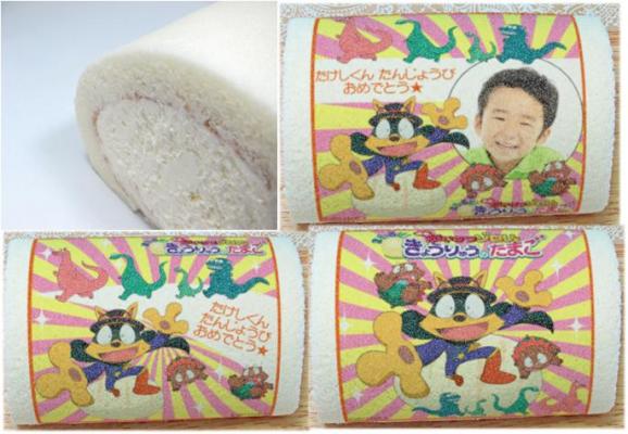 ゾロリたちがプリントされたロールケーキに、お手持ちのお写真とメッセージをプリント致します。