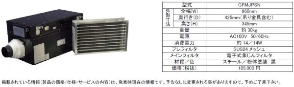 世界150以上の空港で採用されている、喫煙所システムや業務用電子式集じんフィルタを製造・販売する株式会社トルネックス(本社:東京都中央区 / 代表取締役 松井周生)は、電子式集じんフィルタ搭載の「トルネックス外気清浄機 GFMJPSN」を開発、2013年10月10日より販売を開始します。