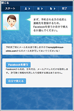 利用者が予約を行うには氏名、生年月日、メールアドレスの入力が必要ですが、Facebookとの連動により、Facebookにある該当情報を取得することができます。また、Facebookと連動した場合、家族の情報などを保存しておくことができます。