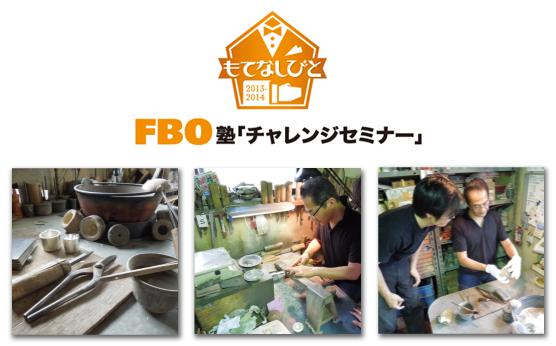 このたびNPO法人FBO15周年記念事業「もてなしびと2013-2014」の一環として、「FBO塾」を「FBO塾チャレンジセミナー」として開催するこことなりました。ワンランク上のプロフェッショナルにチャレンジするスキルアップセミナーとして、知識の修得、体験を通じてプロフェッショナルの資質を磨くことを目的としております。