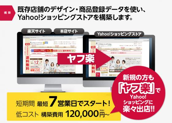対象は、既に楽天市場や自社ECサイトを運営しているネットショップ業者。新サービス「ヤフ楽」は、既存のネットショップを構成しているサイトのデータを流用する形でスピーディーに低コストでYahoo!ストアを構築します。