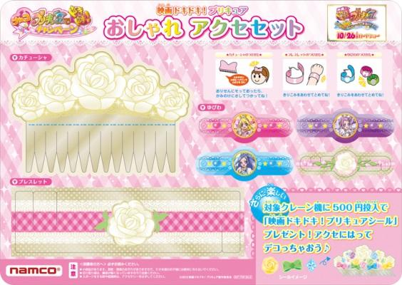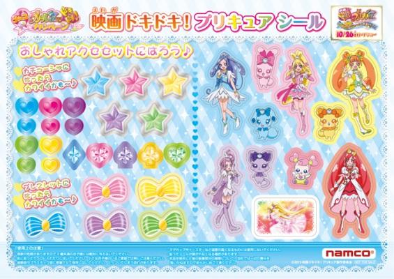 また、対象のクレーンゲーム機に500円を投入していただいたお客様に、「おしゃれアクセセット」をデコレーションすることができるナムコ限定「映画ドキドキ!プリキュアシール」(全2種)をプレゼントします。