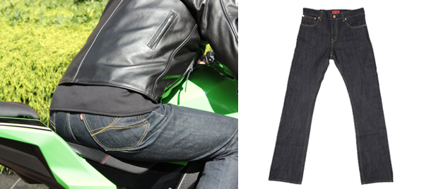 「東本昌平RIDE防風スタンドジップブルゾン」は、ライディング時に腰からの風の侵入を防ぐため、長めの丈としました。「バイクに乗る時にカッコいいジーンズを作る!」というコンセプトのもと製作された「東本昌平 RIDEオリジナルジーンズ 750改」との相性も抜群です!