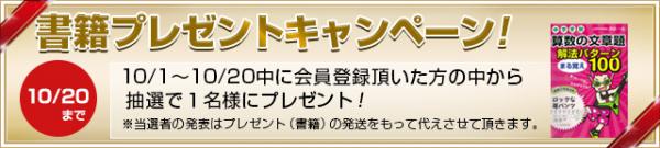 株式会社シンドバッド・インターナショナル(東京都渋谷区)は、同社が運営する会員制eラーニングサービス『スタディ・タウン小学生』に、2013年10月1日から10月20日会員登録した方から抽選で1名に、書籍『中学受験 算数の文章題 解法パターンまる覚え100(浜田一志著・中経出版) 』をプレゼントするキャンペーンを実施する。当選者の発表は、プレゼントの発送を持って代えるものとする。