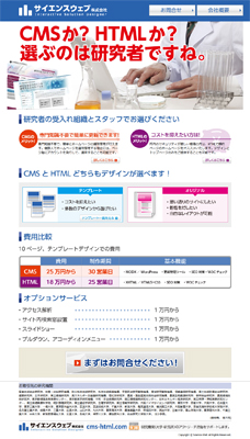 事業内容:研究機関向けのホームページ制作、ホームページの新規作成、ホームページの運用管理、Webシステムの開発、その他、インターネットにかかわる業務