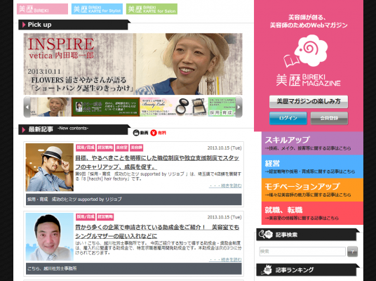 株式会社パイプドビッツ(本社:東京都港区 代表取締役社長 CEO:佐谷宣昭 証券コード3831、以下「パイプドビッツ」)は、2013年5月28日に創刊した、美容師を成長させるスマートフォン向けWebマガジン「美歴マガジン」に続き、PC向け「美歴マガジン」を2013年10月15日に提供開始しましたので、お知らせいたします。