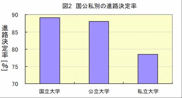 【特徴】国公立と私立で進路決定率に大差あり。(図2)