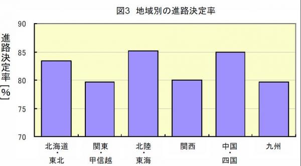 【特徴】関東、関西の進路決定率は決して高くない。(図3)