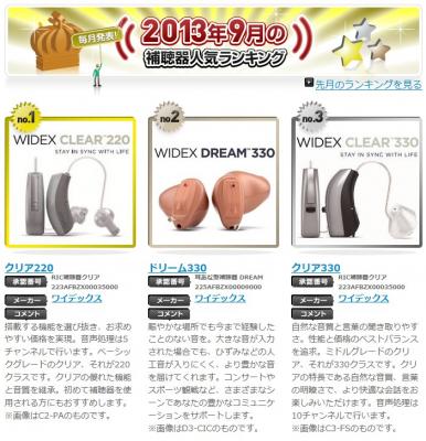 ■補聴器人気ランキング:http://www.widexjp.co.jp/ha_rank/2013/09.html