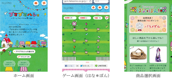 フェリシモのスマートフォン専用サイトです。2013年5月にオープンしました。サイトの内容は、500円・700円・1,000円・2,000円など、その時オープンしているコースのいずれかを選び、簡単なゲームに挑戦すると、フェリシモの商品がそれぞれの価格でお得に購入できるというものです。高得点になるほど選択できる商品のレア度とお得度が上がります。