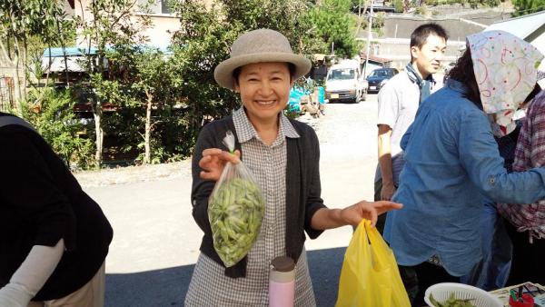 「大きい」「美味しい」「楽しかった」と好評。毎年楽しみに参加される方も多く、山梨県外からも200名以上が来場。中には甲府から自転車で4時間かけてあけぼのだいずの枝豆を求めて来ました。