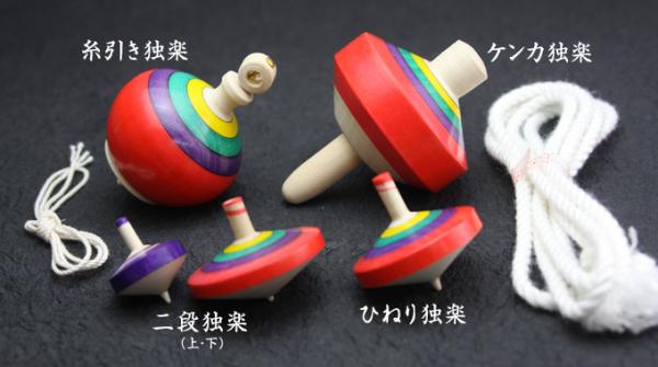 1)糸引き独楽・・・独楽の軸に巻き付けた紐を引くことで回す独楽。