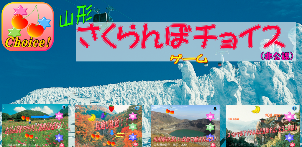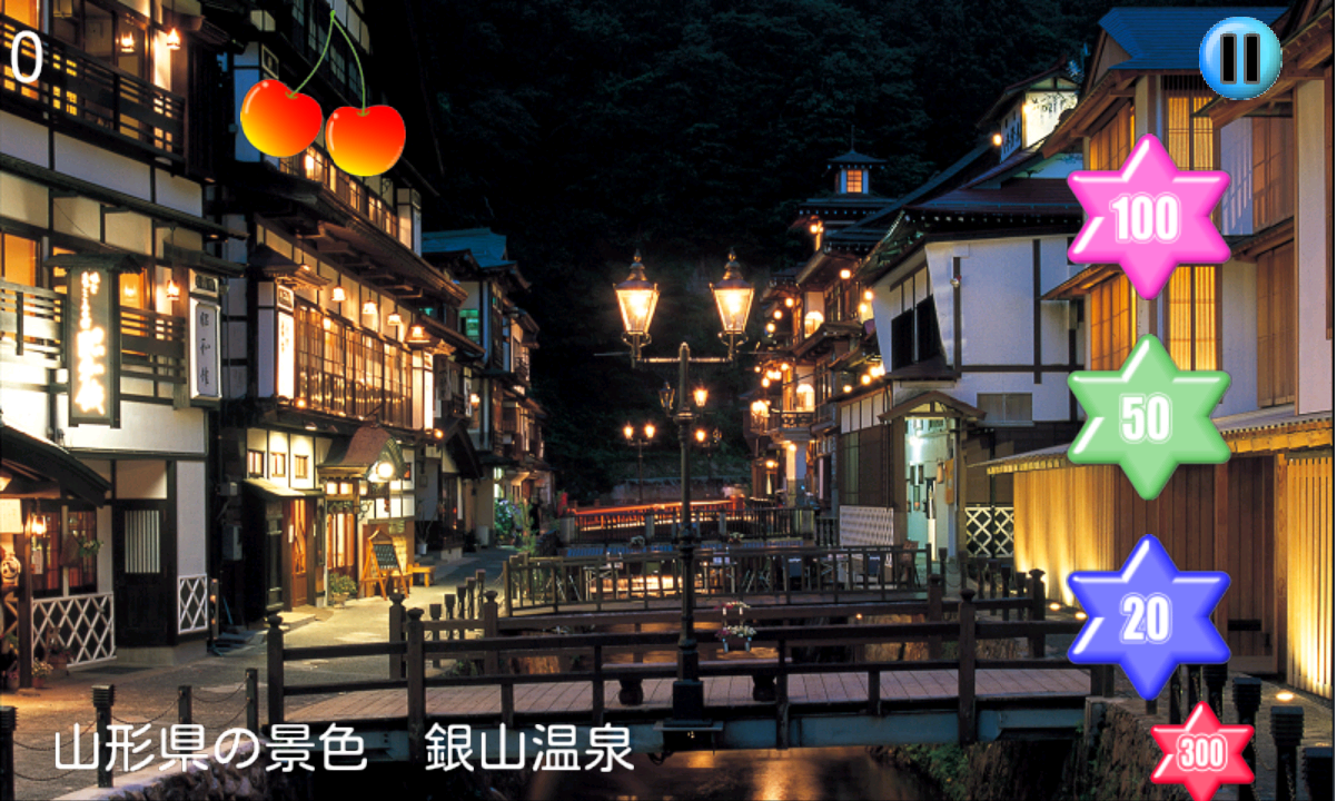 背景に表示される山形県の名所を見ながら指一本で気軽に遊ぶ事が出来ます。